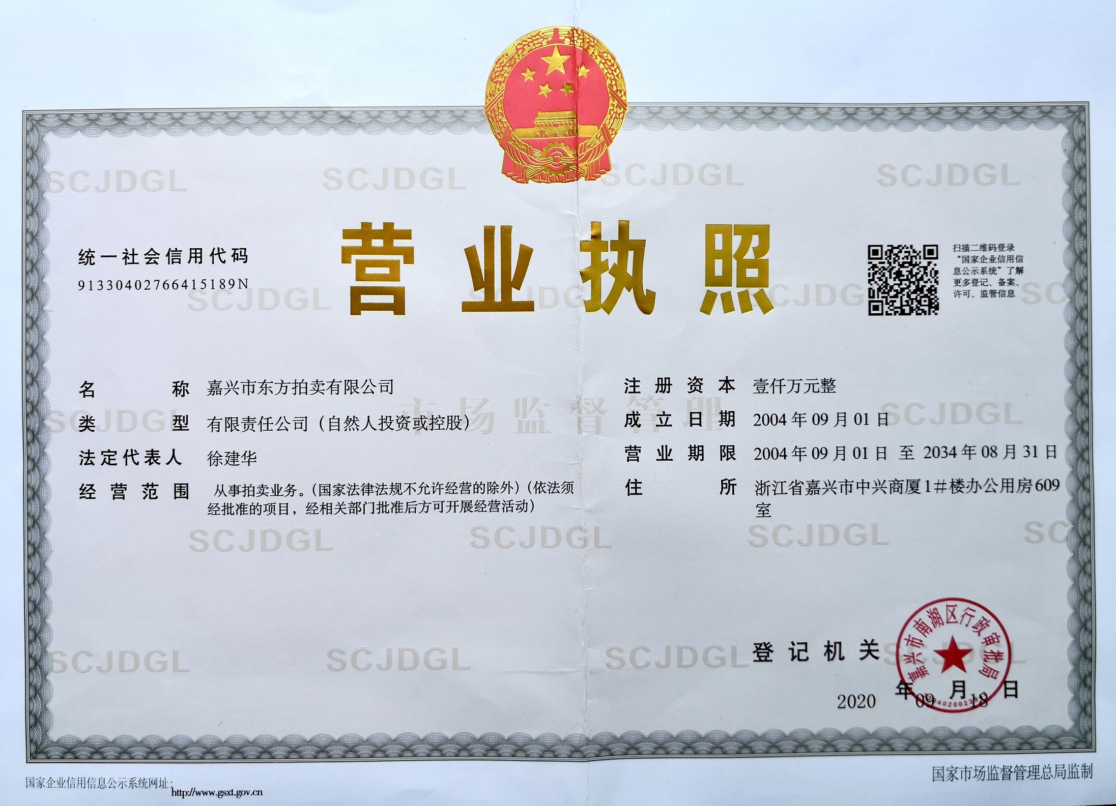 嘉興市東方拍賣有限公司成立于2004年9月,是經(jīng)省、市二級(jí)經(jīng)貿(mào)委審查批準(zhǔn),嘉興市工商局依法登記注冊(cè)的市級(jí)拍賣企業(yè),公司地址座落于嘉興市勤儉路中興商廈1號(hào)樓609室,注冊(cè)資金人民幣:1000萬(wàn)元,營(yíng)業(yè)場(chǎng)所合計(jì)面積427.03平方米,公司實(shí)行獨(dú)立核算、自主經(jīng)營(yíng)、自負(fù)盈虧的經(jīng)營(yíng)原則。公司主要從事各種拍賣業(yè)務(wù)。公司經(jīng)營(yíng)宗旨:依法經(jīng)營(yíng),公開(kāi)、公平、公正、誠(chéng)實(shí)信用。