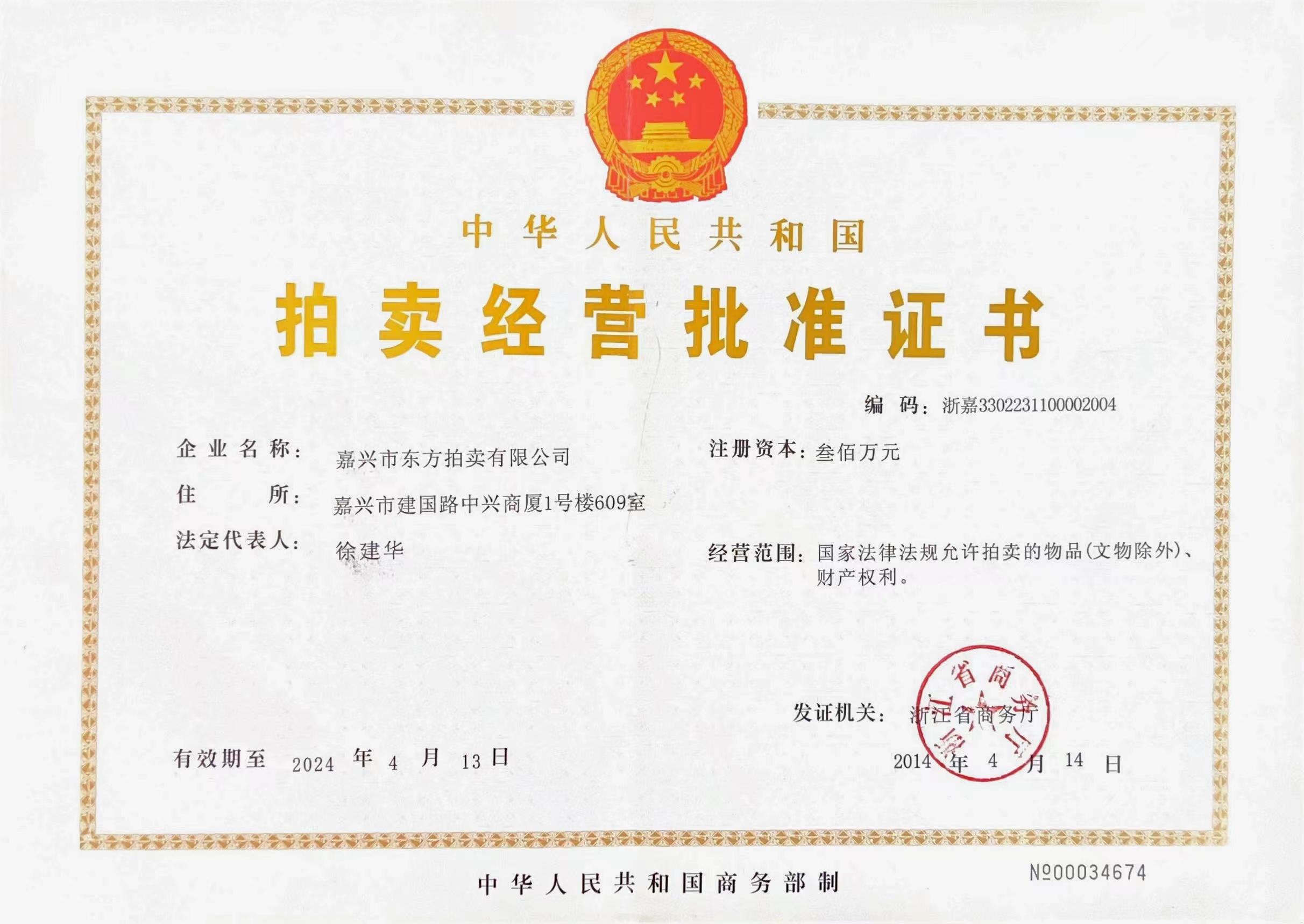 拍賣經(jīng)營(yíng)批準(zhǔn)證書(shū)